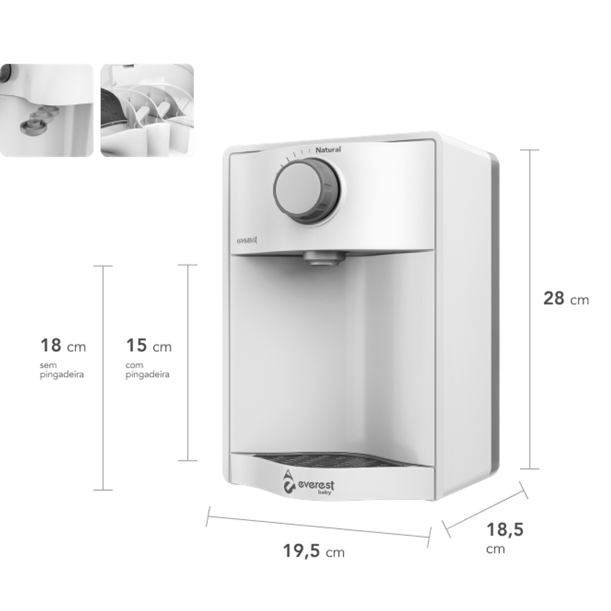 O Everest Baby conta com elemento filtrante de dupla ação: